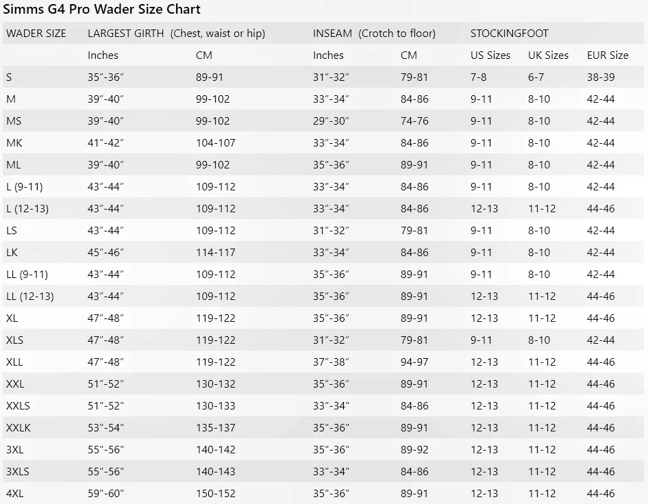 - For help sizing yourself for waders please see How Choose the Perfect Simms Wader