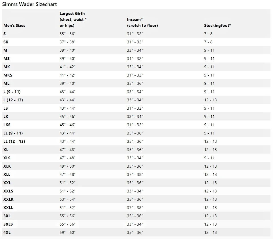 - For help sizing yourself for waders please see How Choose the Perfect Simms Wader